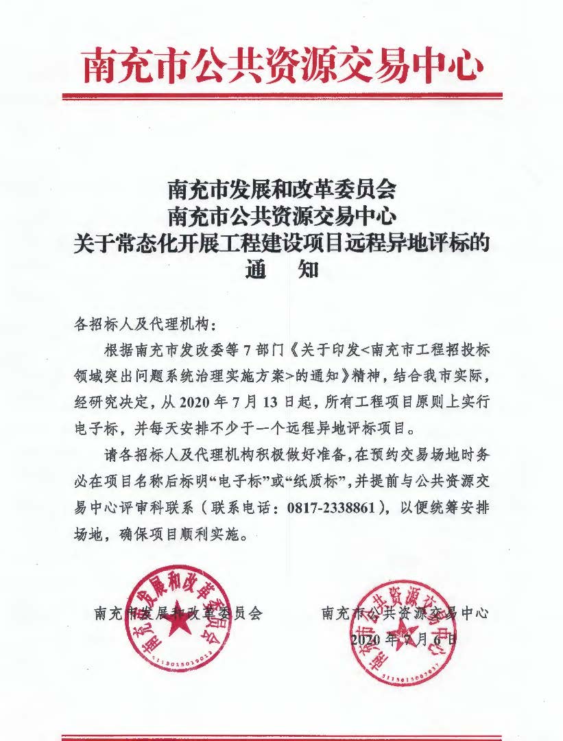 南充市發(fā)展和改革委員會、南充市公共資源交易中心關于常態(tài)化開展工程建設項目遠程異地評標的通知