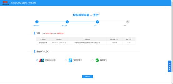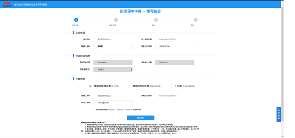 (注:申請保單過程中如遇特殊情況退出頁面,可通過點擊繳納保證金頁面的保單申請重新進(jìn)入,系統(tǒng)自動跳轉(zhuǎn)至上一步未完成頁面)