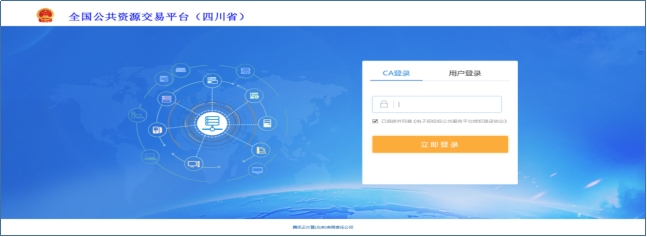 賬號(hào)注冊(cè)完成后從四川省公共資源交易平臺(tái)公共資源交易統(tǒng)一認(rèn)證系統(tǒng)登陸(地址:http://ggzyjy.sc.gov.cn/PSPSSO/login/oauth2login),點(diǎn)擊CA登陸或者用戶登錄,通過使用CA鎖或者輸入賬號(hào)和密碼等方式登錄系統(tǒng)。