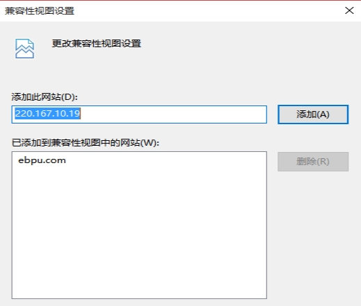 3.4、在“工具”菜單→“兼容性視圖”中添加,系統(tǒng)訪問(wèn)ip地址:220.167.10.19,然后點(diǎn)擊“添加”按鈕完成添加。