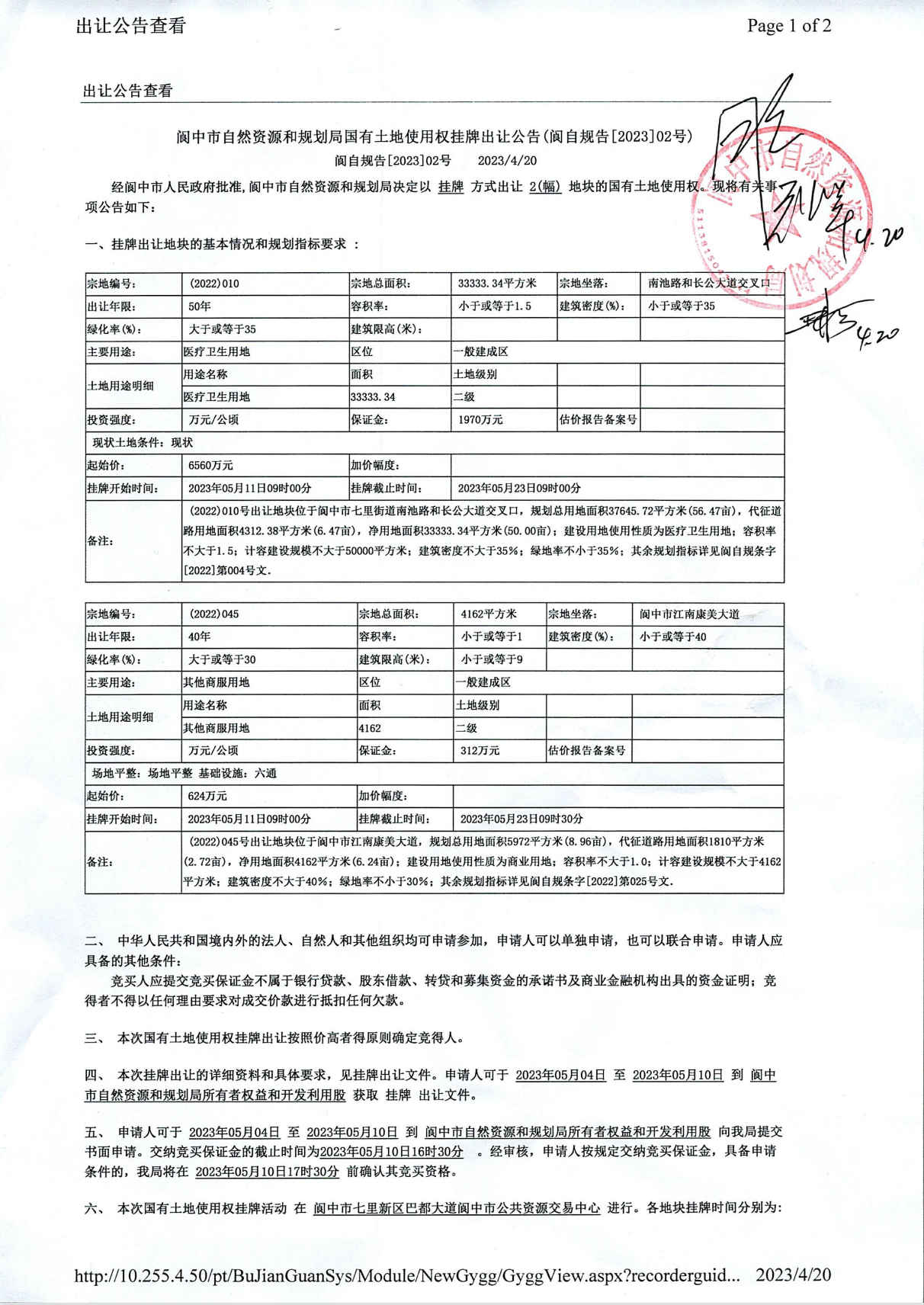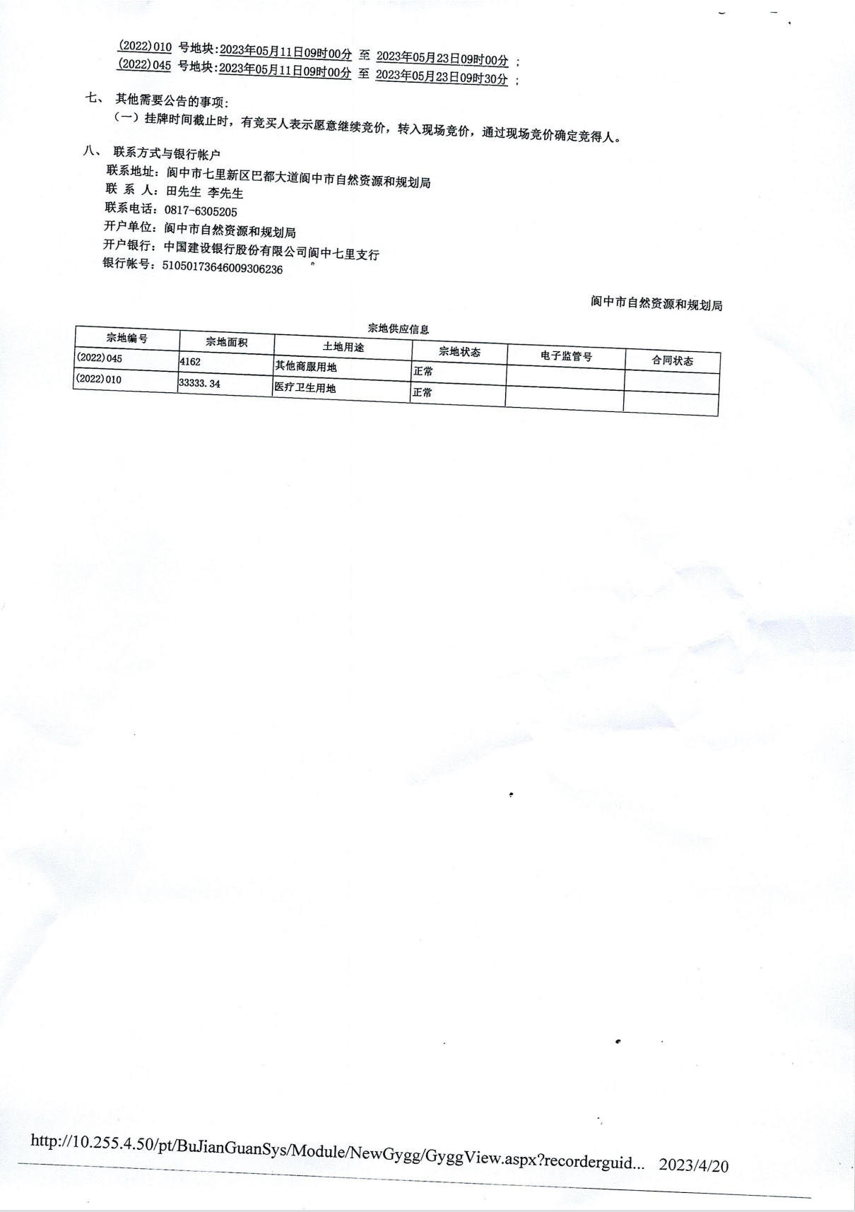 閬中市自然資源和規(guī)劃局國(guó)有土地使用權(quán)掛牌出讓公告(閬?zhàn)砸?guī)告[2023]02號(hào))