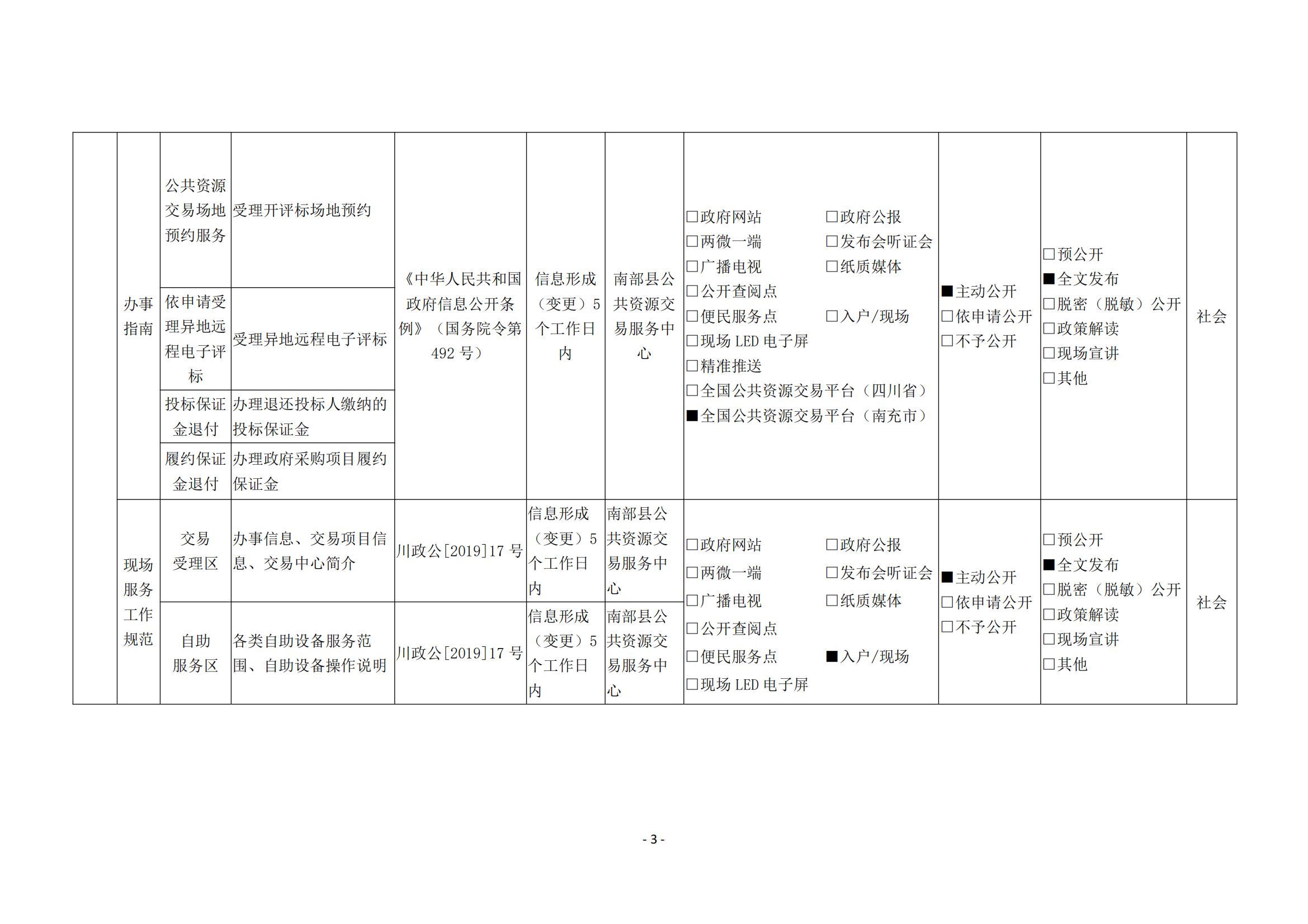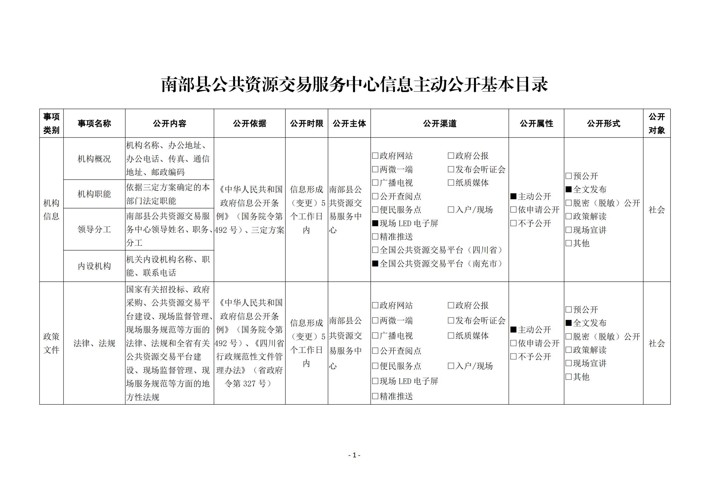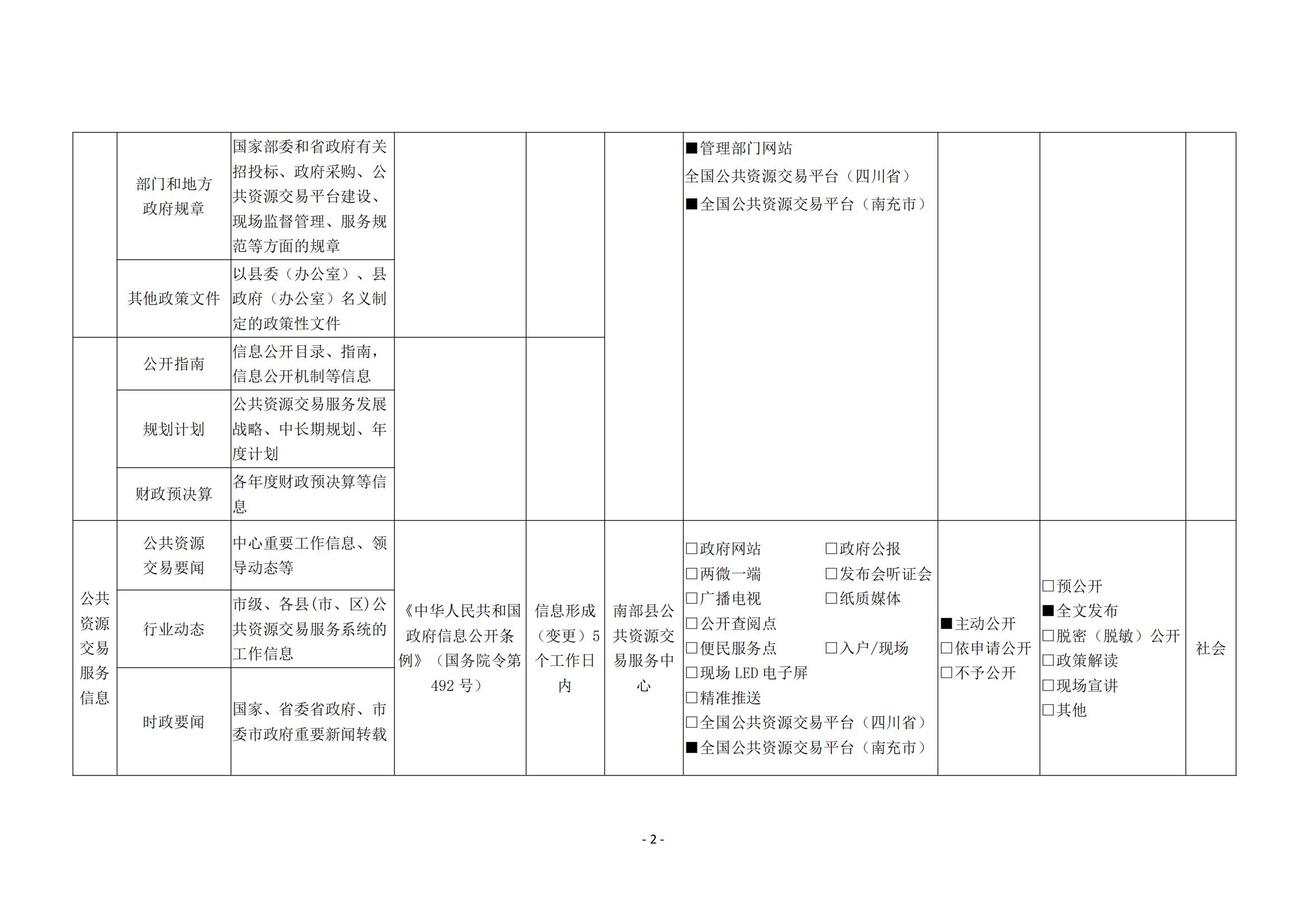 南部縣公共資源交易服務(wù)中心信息主動公開基本目錄