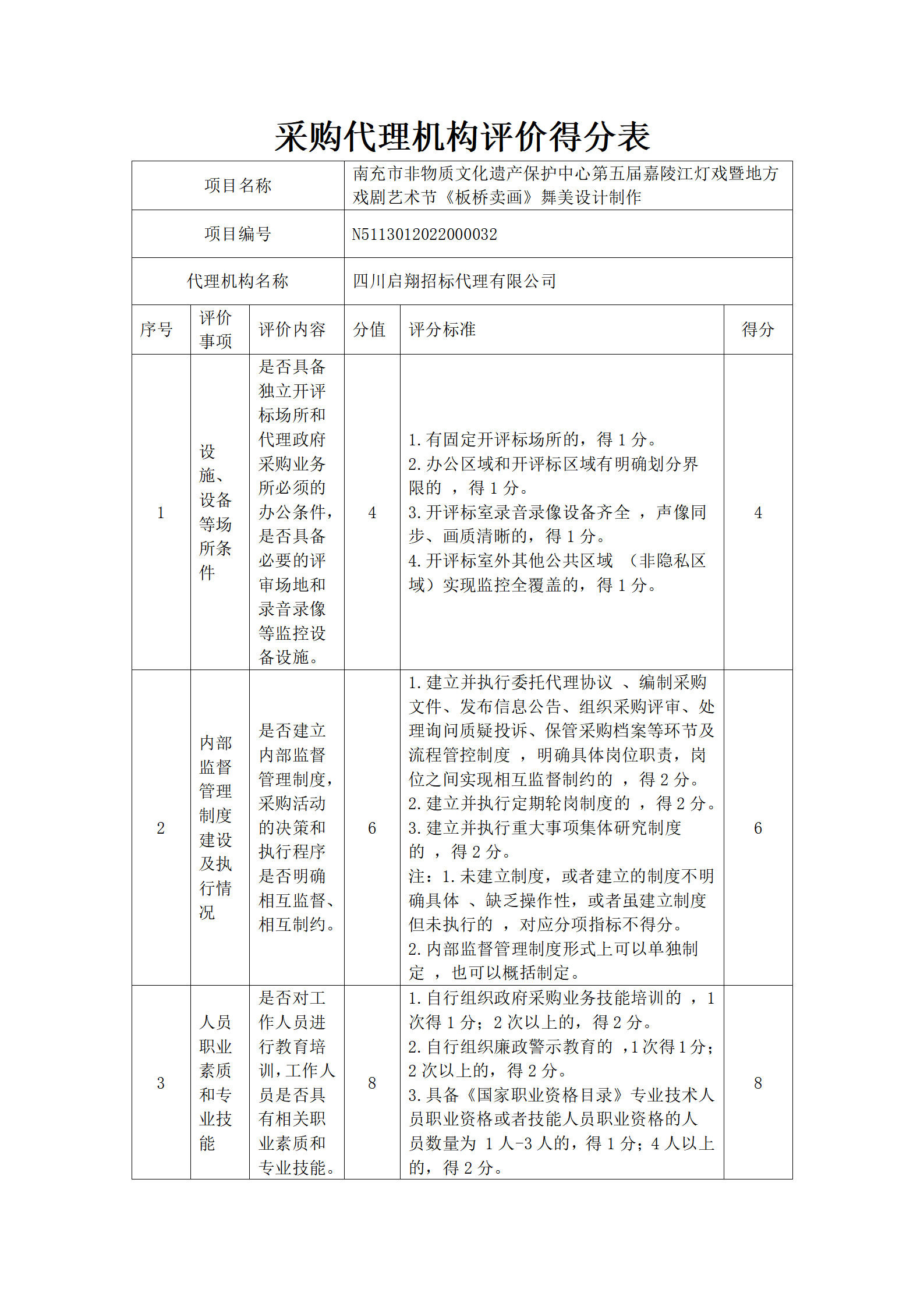 南充市非物質(zhì)文化遺產(chǎn)保護(hù)中心第五屆嘉陵江燈戲暨地方戲劇藝術(shù)節(jié)《板橋賣(mài)畫(huà)》舞美設(shè)計(jì)制作采購(gòu)代理機(jī)構(gòu)評(píng)價(jià)
